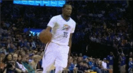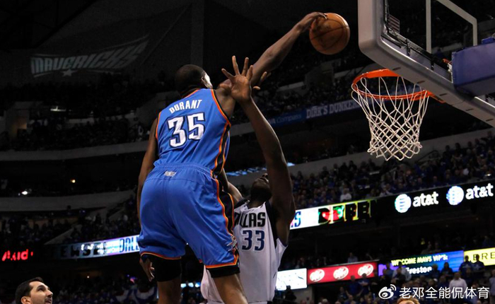 最后是弹跳,杜兰特雷霆时期也是一名扣篮猛将,单赛季扣篮超100记就有9次。他扣篮很轻松,如果他全力去扣,一样是弹簧人级别。他极限弹跳在1米1以上,头部能超框10cm左右,从这一次隔扣来看,按照他身高来算,极限跳1米1以上完全没问题。